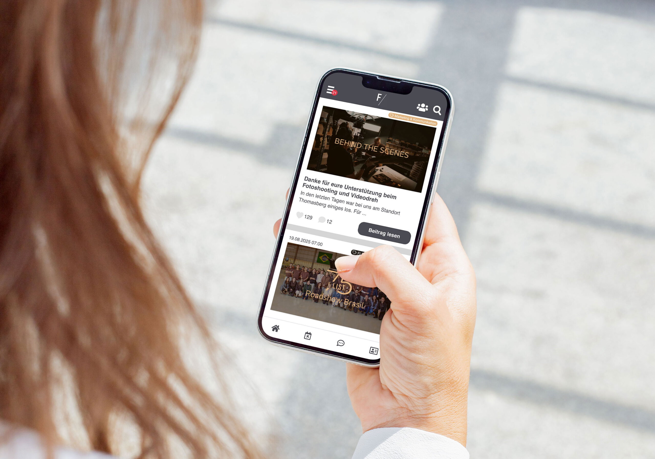Bildtext: In Zeiten von Fachkräftemangel stärkt F/LIST die interne Kommunikation mit einer eigenen Mitarbeiter-App und fördert damit Motivation, Identifikation mit dem Unternehmen und Mitarbeiterbindung.